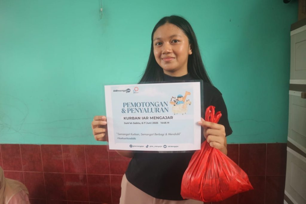 Salah satu warga menyampaikan haru dan terima kasihnya, “Terima kasih kepada SC dan IAR Mengajar atas qurban yang diberikan. Semoga Allah menerima dan memberkahi qurban tahun ini, Aamiin Allahumma Aamiin.”
