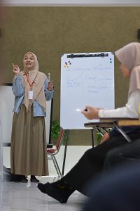 Hari Kamis, peserta fokus melakukan tahap finishing poster sekaligus berlatih presentasi agar lebih percaya diri dan lancar berbicara dalam Bahasa Inggris.